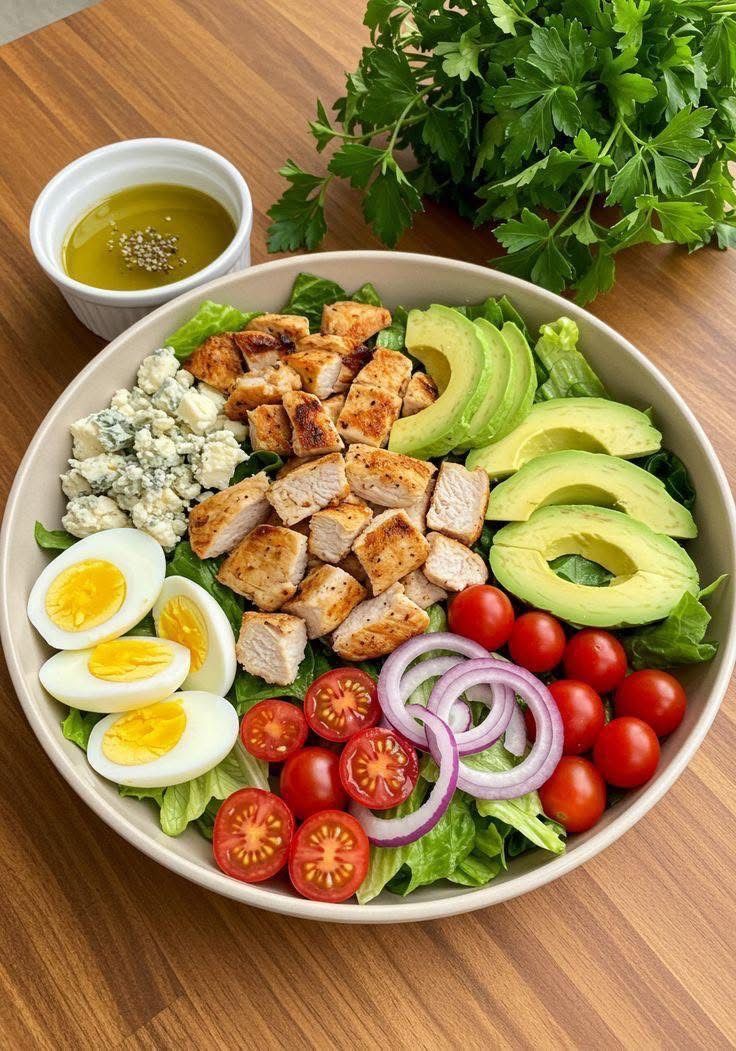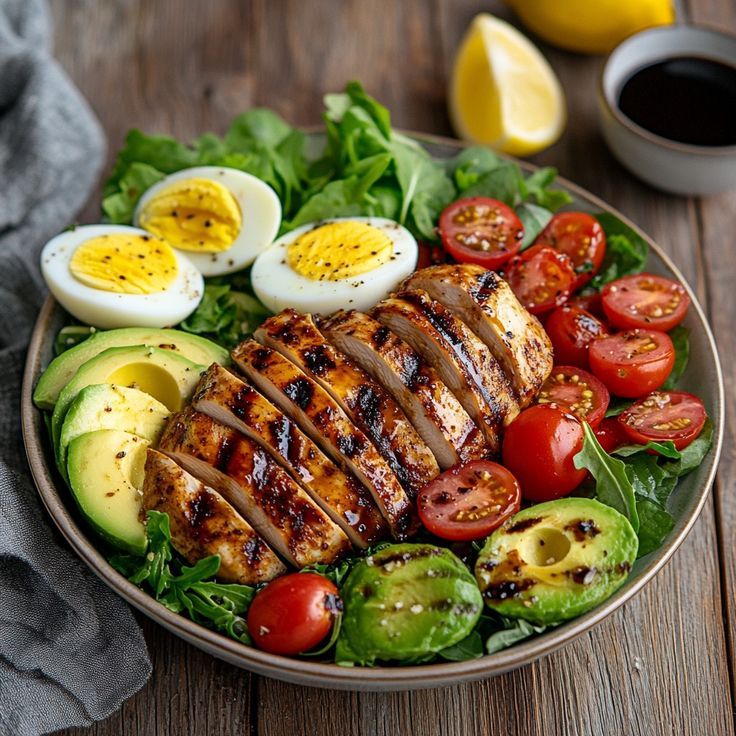 Món ăn nổi bật với phần ức gà được áp chảo vàng nhẹ bên ngoài, mềm mọng bên trong. Khi kết hợp cùng rau xanh, cà chua, trứng luộc và bơ tươi, món salad tạo nên tổng thể hài hòa giữa vị đậm đà, béo nhẹ và thanh mát. Đây là món ăn không chỉ ngon miệng mà còn giúp cung cấp năng lượng cần thiết cho một ngày làm việc và học tập hiệu quả.